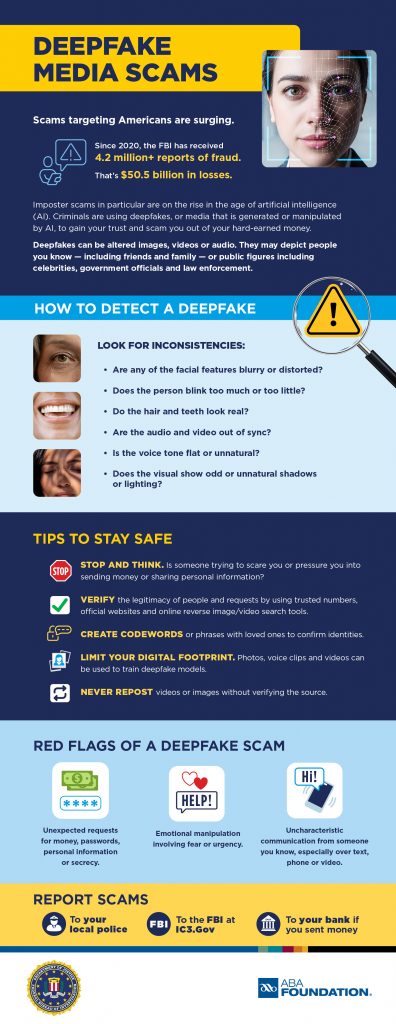 미국 은행 연합회, 딥페이크 사기 식별 홍보 그래픽