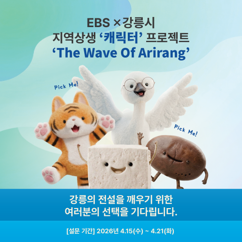 이에 따라 15일부터 21일까지 강릉시 관광 캐릭터 선정을 위한 설문조사가 진행된다. 온라인으로 누구나 참여할 수 있으며, 자세한 내용은 EBS 홈페이지(www.ebs.co.kr)와 강릉시 홈페이지(www.gn.go.kr)에서 확인할 수 있다.