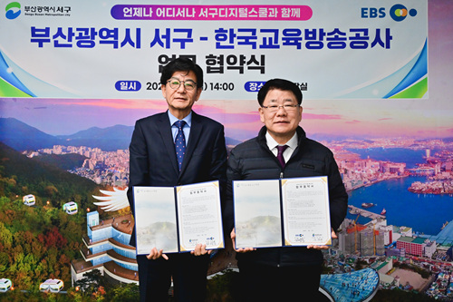 3월 9일 부산 서구청 구청장실에서 열린 협약식에는 김성동 EBS 부사장과 공한수 부산 서구청장을 비롯해 양 기관 관계자들이 참석했다.