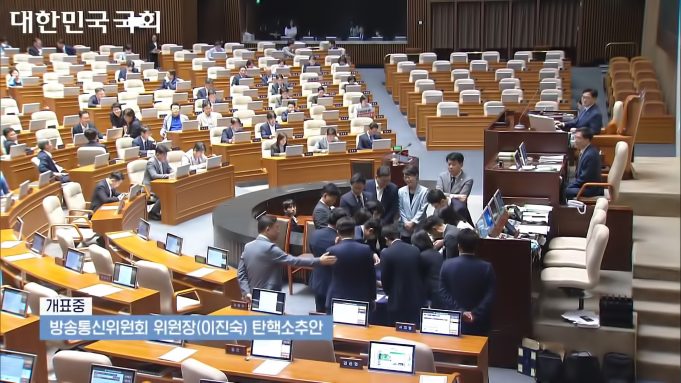 국회는 8월 2일 본회의를 열고 이 위원장에 대한 탄핵소추안을 표결했다. 국민의힘 의원들은 탄핵에 반대하며 모두 퇴장해 야당 의원들만으로 투표를 진행했다. 투표 결과, 재적 의원 188명 중 가 186표, 부 1표, 무효 1표로...
